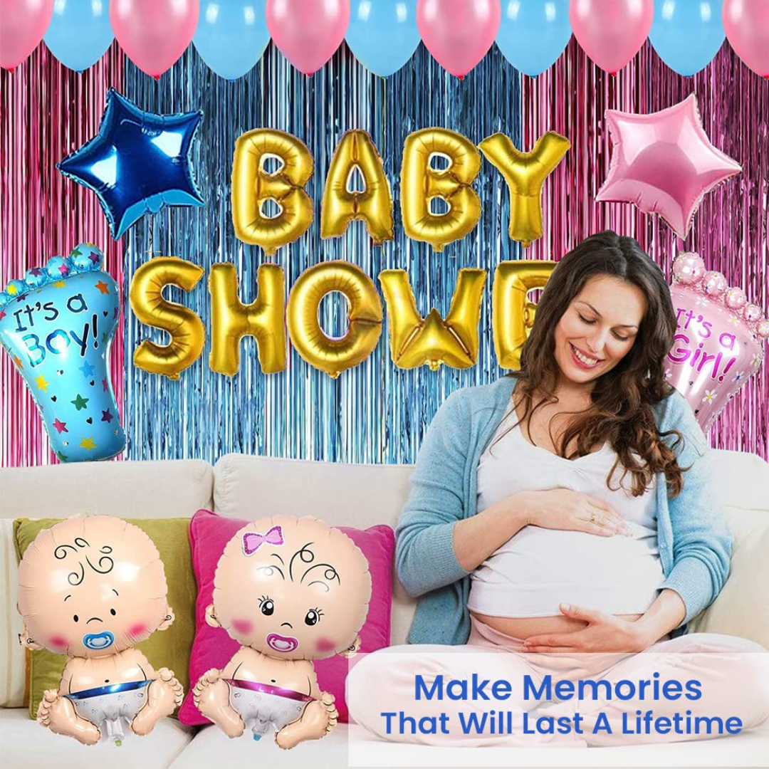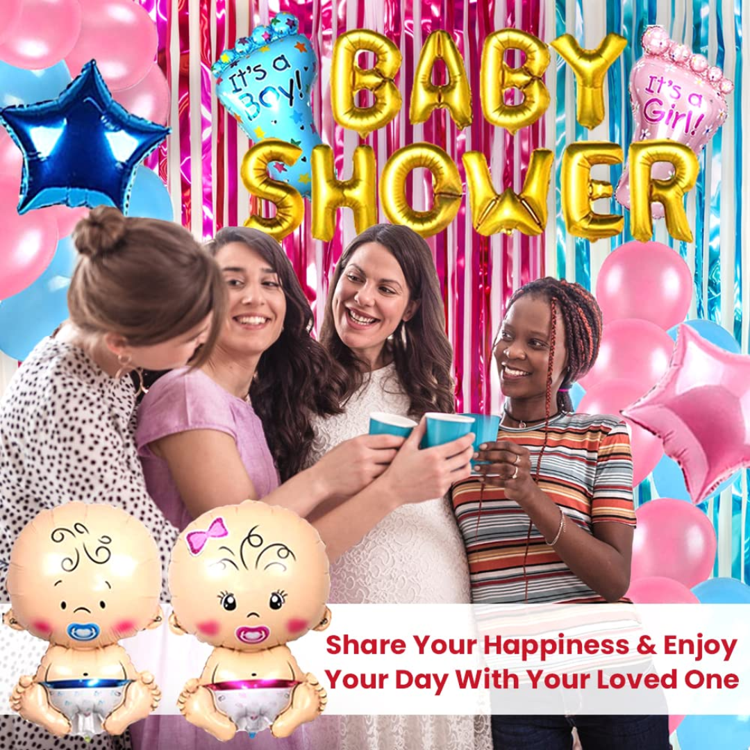 Those party banners, balloons, foil curtains,s and foil balloons will make your party full of enthusiasm and surprise! And makes your party attractive, enjoyable and happy. Save your money and don’t spend a fortune when you can get everything you need with our Premium Baby shower Party Kit!.