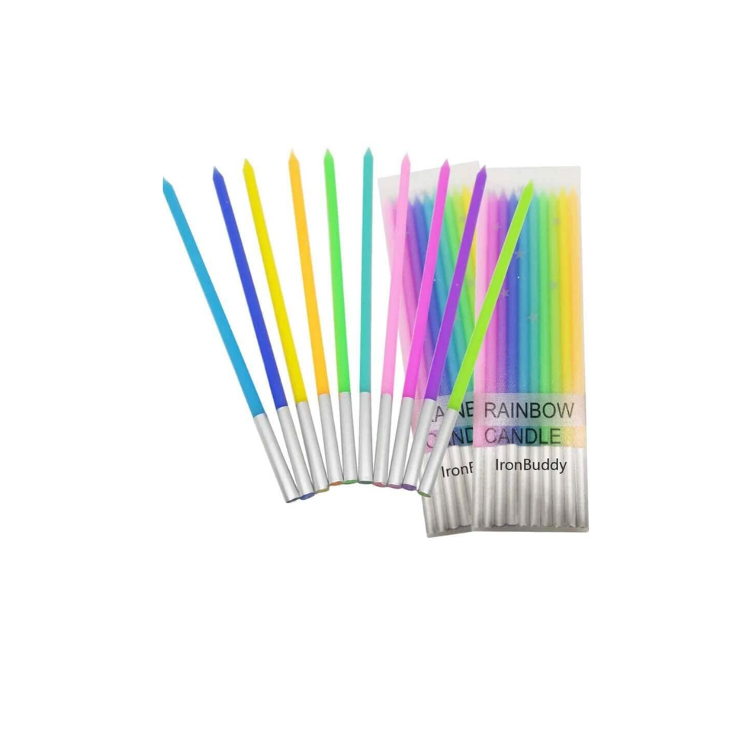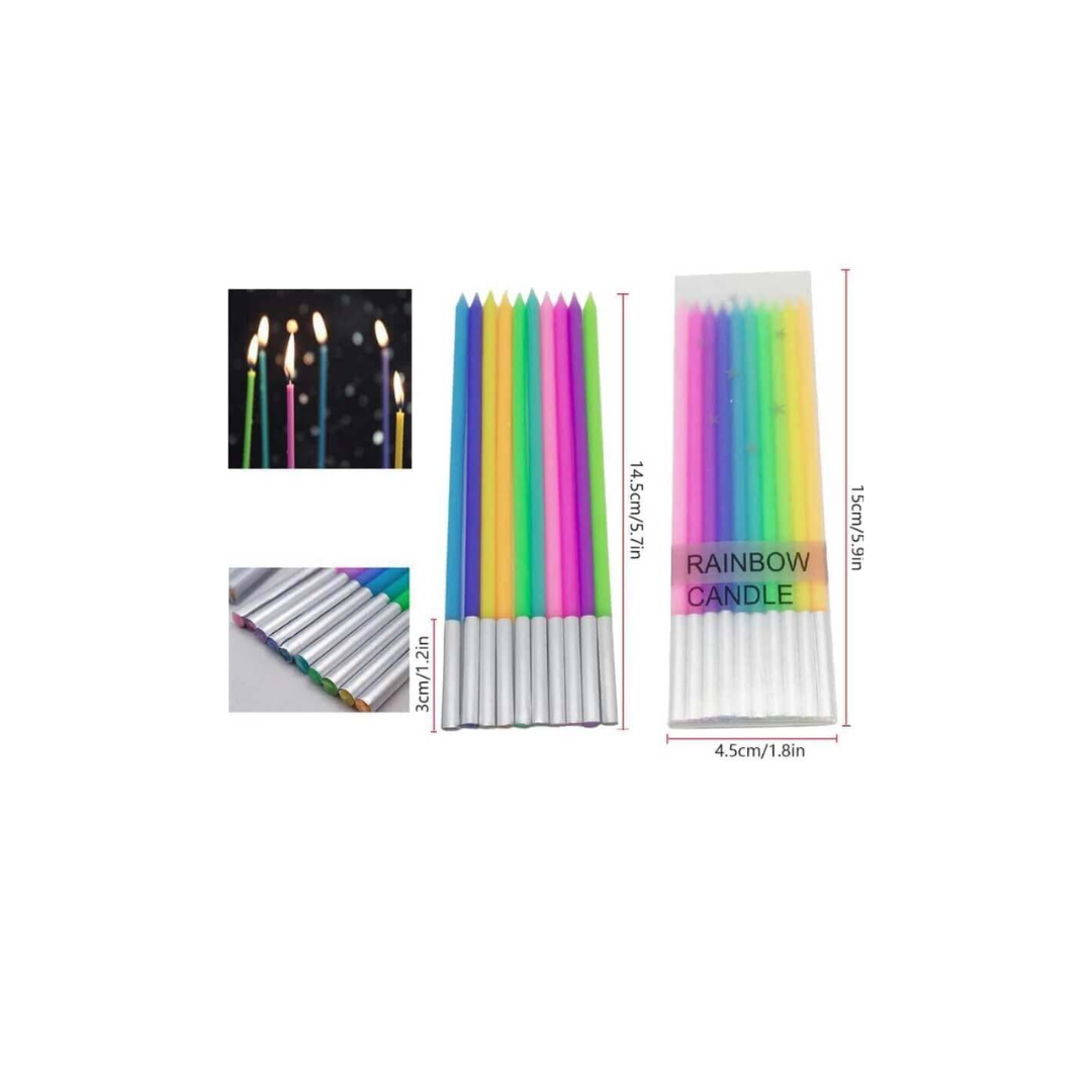 - These neon tall candles are suitable for all ages, and is best suited with the Rainbow Theme Birthday cake or another Anniversary or Birthday or Bachelorette Cakes.