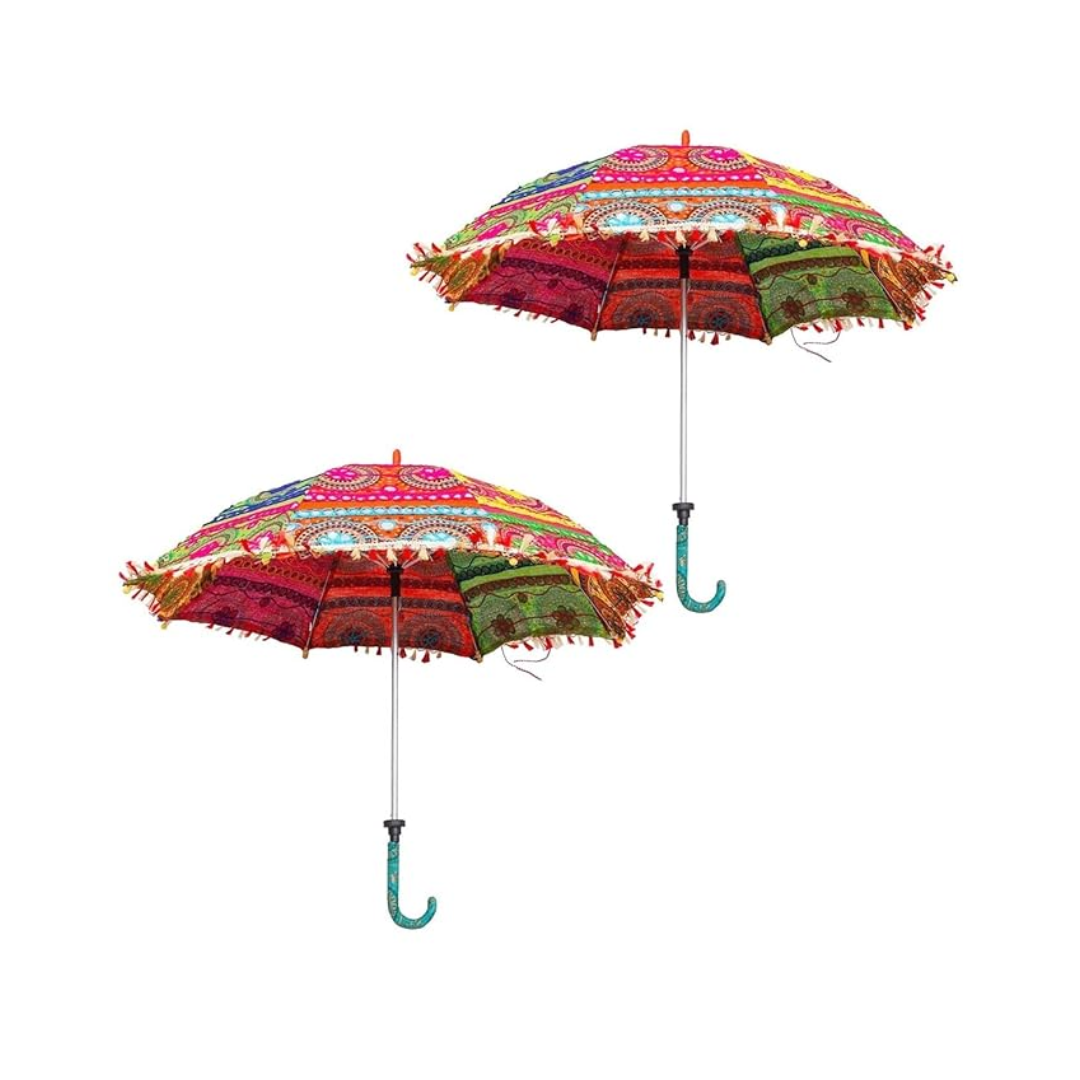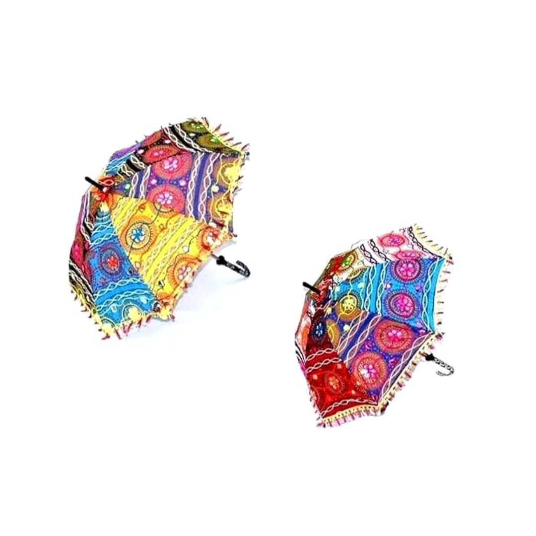 Traditional Indian Beautiful cotton umbrella is handcrafted by village artisan in Rajasthan. These Indian umbrellas are beautiful and complete decorated with Embroidery work. These handicrafts are designed in various multi color combination and are offered in a multitude of motifs, patterns, various other specifications.