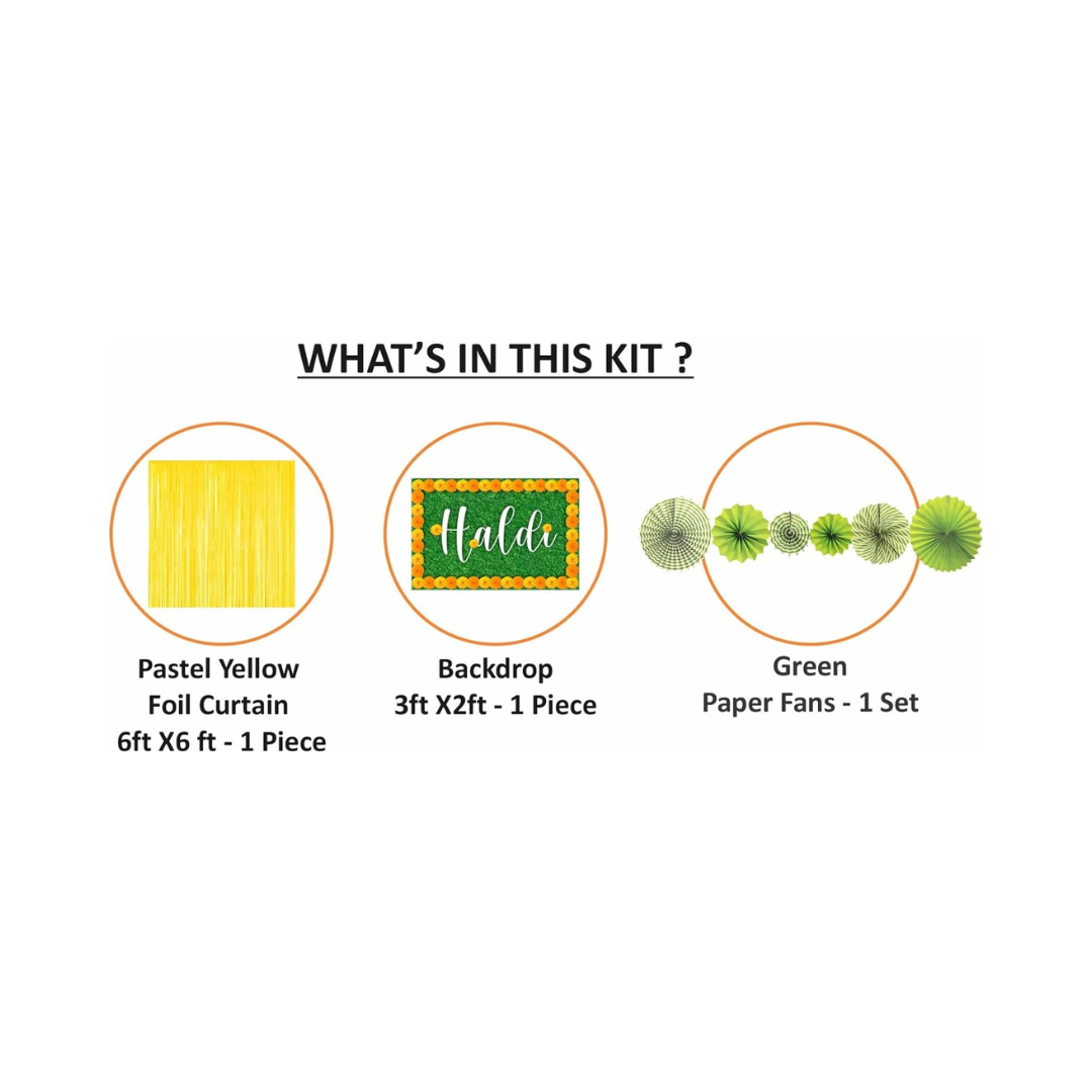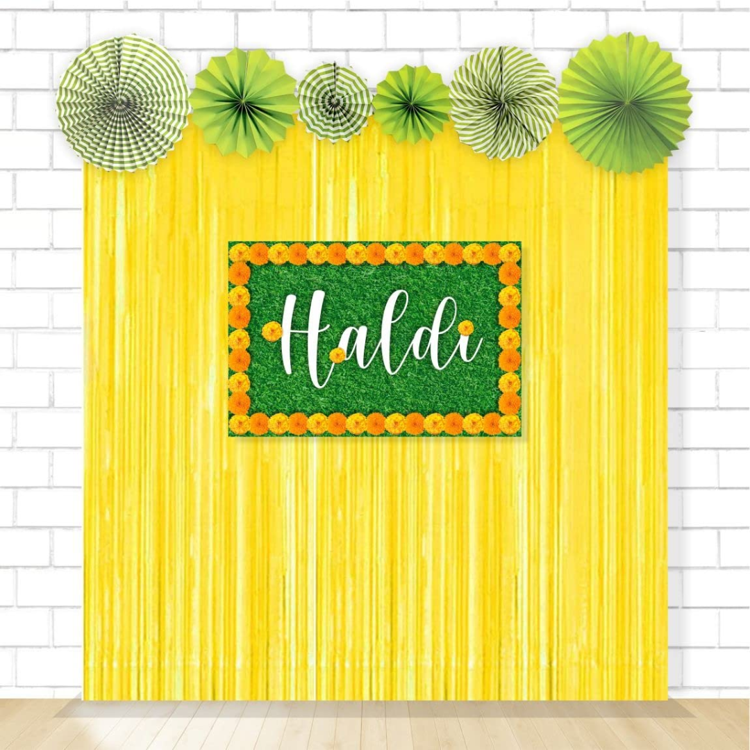 This Haldi Decoration kit can be used for haldi function of bride. Apt backdrops for Mehndi, sangeet or haldi wedding functions. Elegant budget friendly backdrop to make your haldi function grand and memorable to celebrate with brides friends, bridesmaid and family.