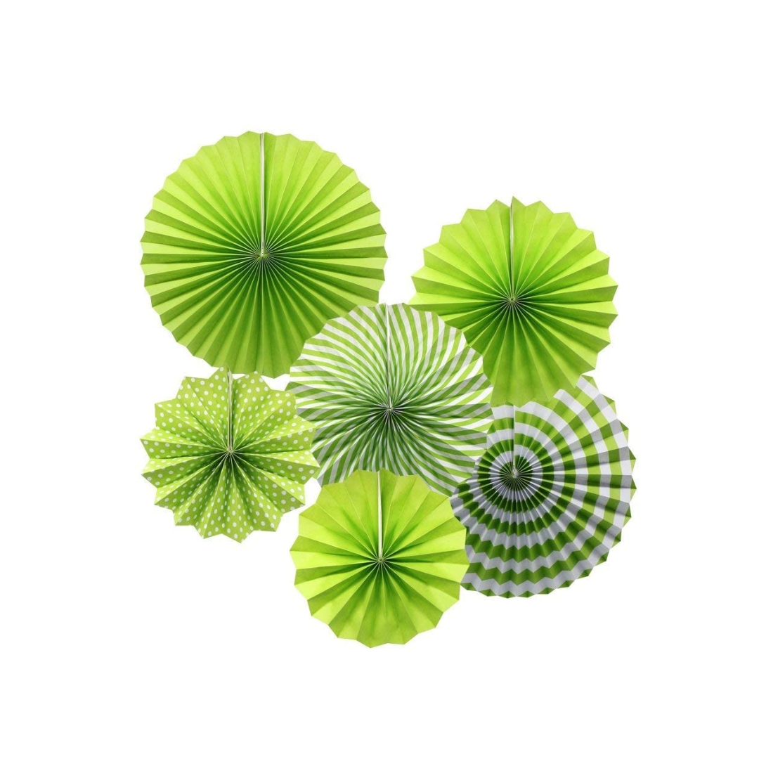 - PAPER FANS : Greeen 6 Paper fans with 3 different sizes 16″ – 2 pcs , 12″ – 2 pcs , 8″- 2pcs