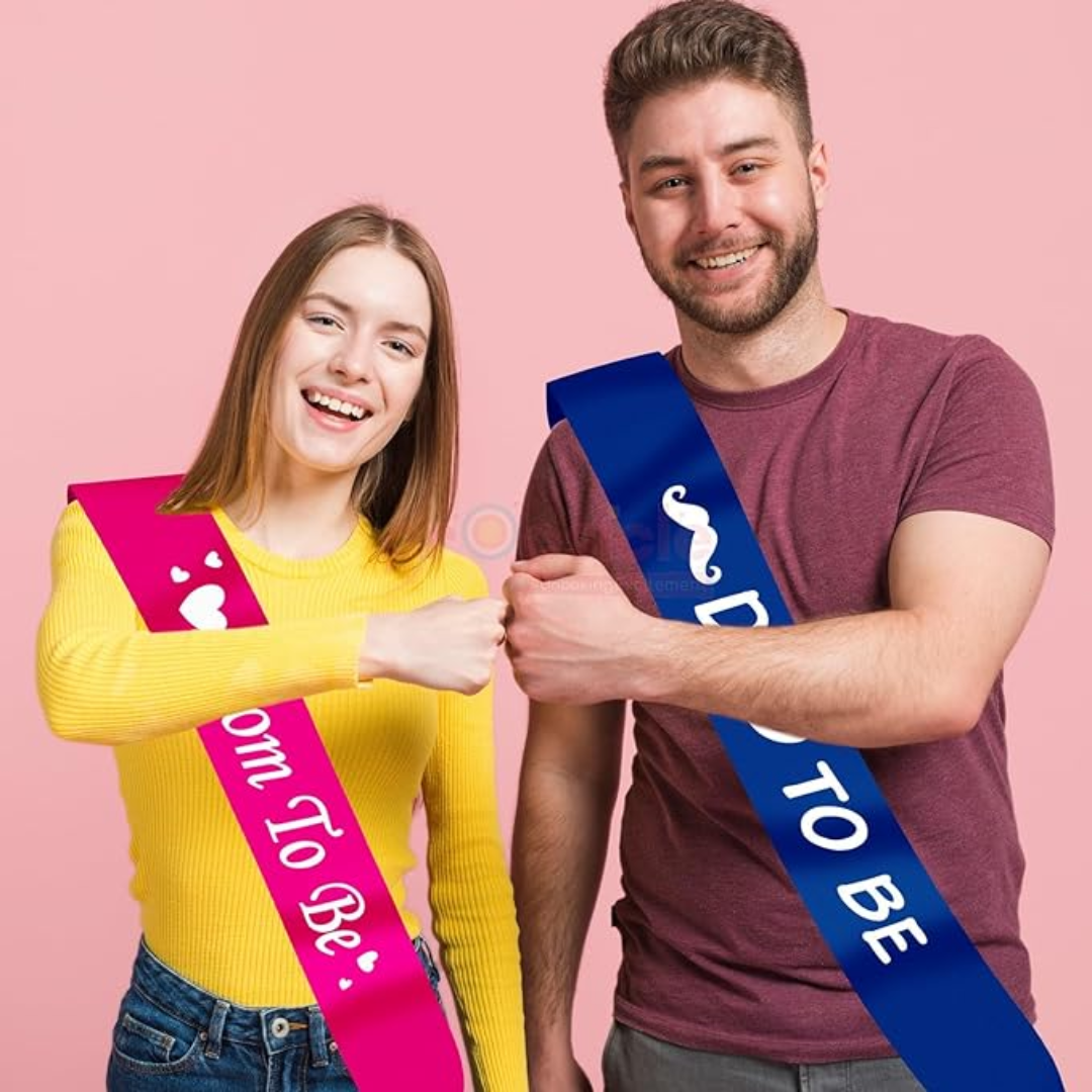 The “Dad to Be” and “Mom to Be” satin sashes are not only props but also symbols of unity, partnership, and the exciting journey ahead for the couple. They represent the shared commitment of both parents in nurturing and raising their little one.