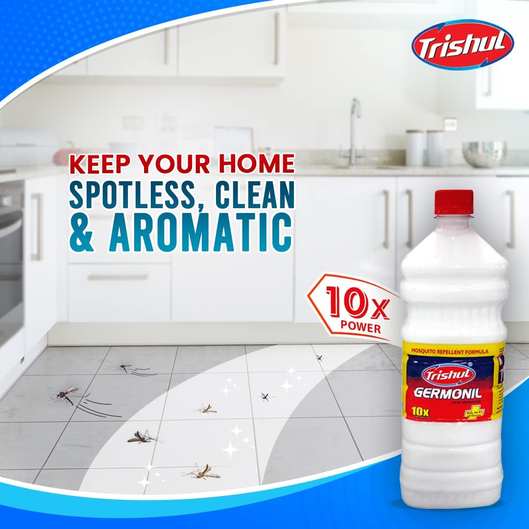 • EFFECTIVE CLEANSER WITH STRONG ODOUR: Trishul Germonil White Floor Cleaner is formulized to kill 99.9% of germs. It has strong odour and can be used directly on stains for spot cleaning, or can be diluted in water for use on hard surfaces, toilets drain, etc.