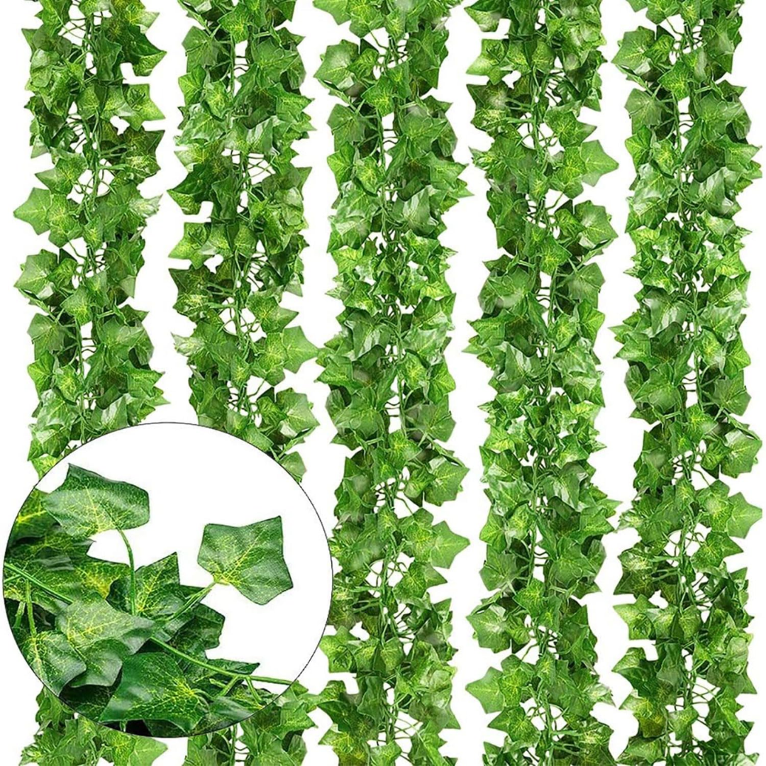 • Size & Quantity: Each ivy hanging vine is approximately 82.6 inches (2.1m) long, with a leaf diameter of about 1.9 (5cm) inches. A bag of 12 artificial ivy garlands, a total of 83ft (25.2m), a leaf diameter of about 1.9 inches. They are long enough to cover various surfaces comfortably. Our artificial ivy leaf garlands are made of excellent-quality plastic stems and fabric leaves. Leaves are attached to the stems tightly; difficult to spill. It’s very easy to clean.