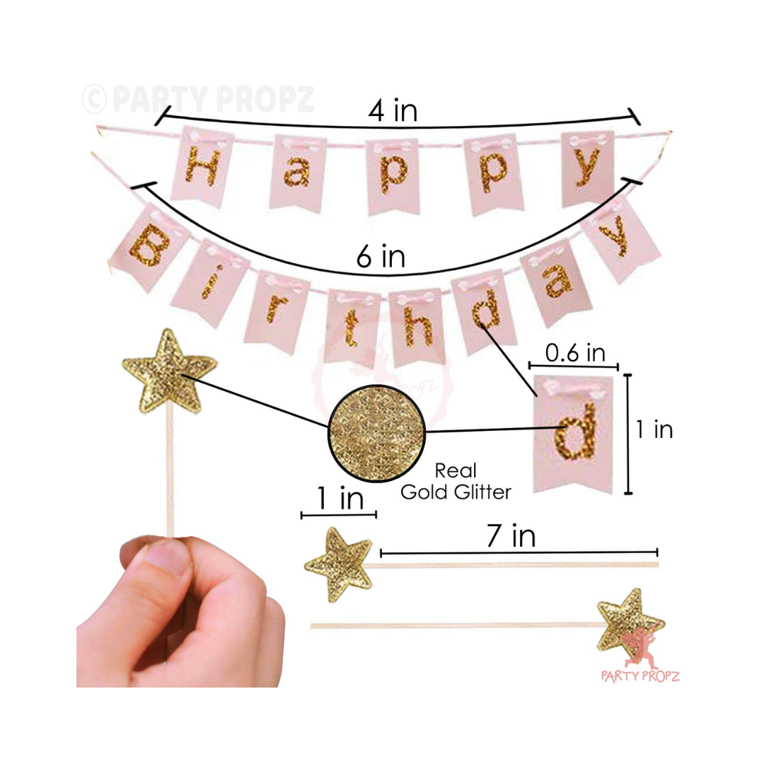 • EYE-CATCHING DESIGN: The Party Propz Pink Happy Birthday Cake Topper features golden glitter alphabets that spell out “Happy Birthday,” creating an eye-catching design that adds a touch of elegance and sparkle to the cake. The shimmering golden letters catch the light and instantly draw attention, making it a beautiful centerpiece for any birthday celebration.