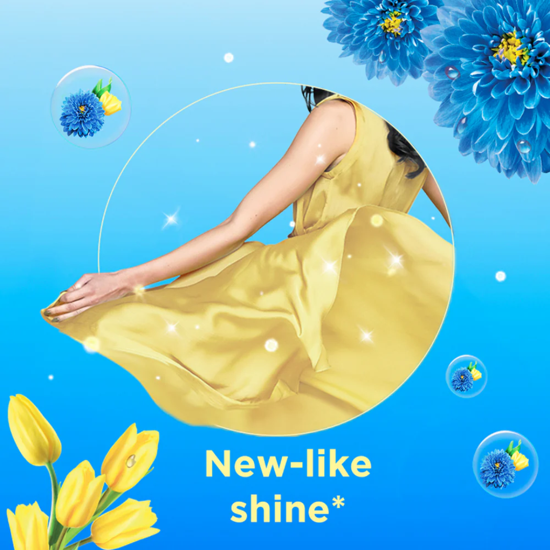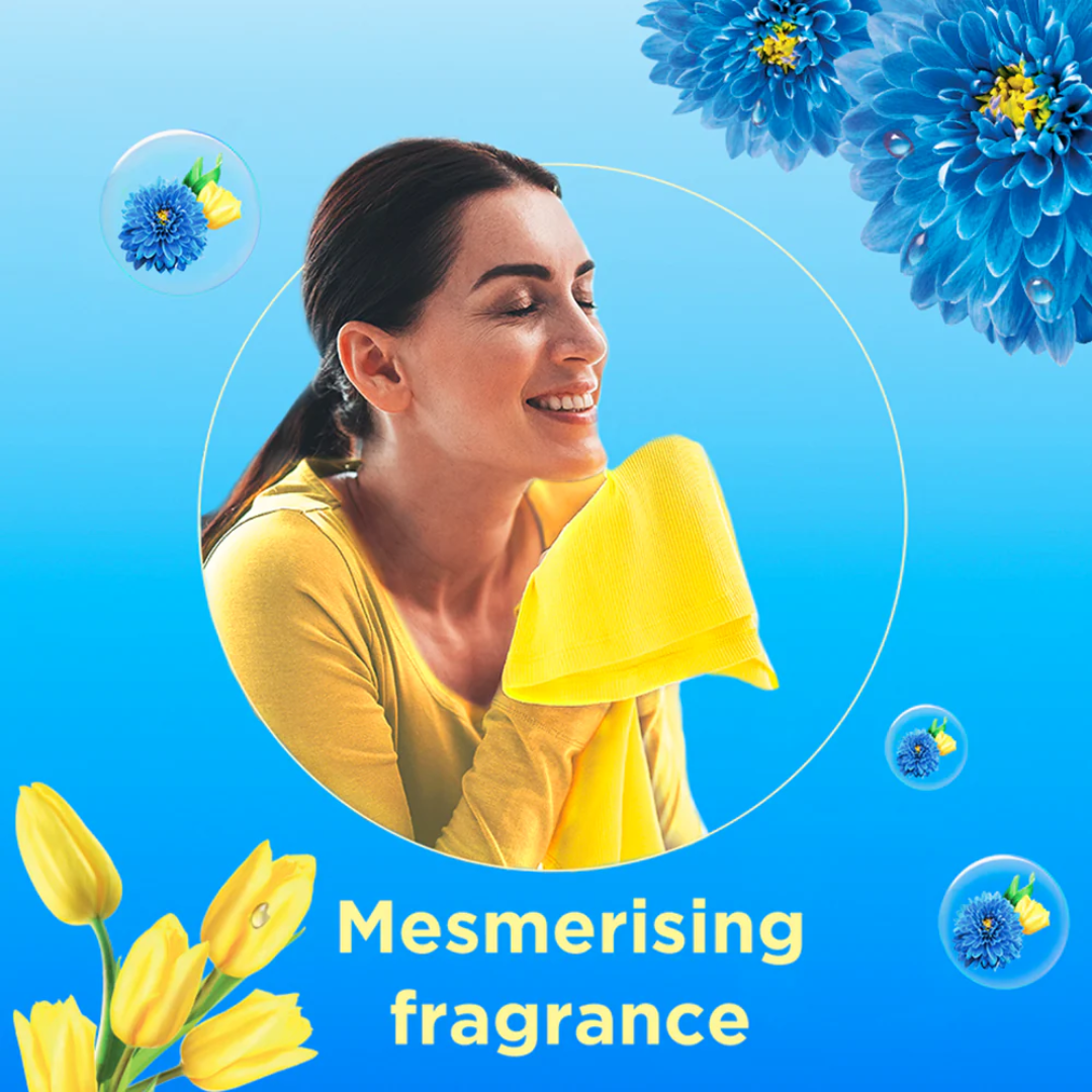 • New Comfort Fabric Conditioner now with fragrance pearls gives all-day freshness to your clothes.
