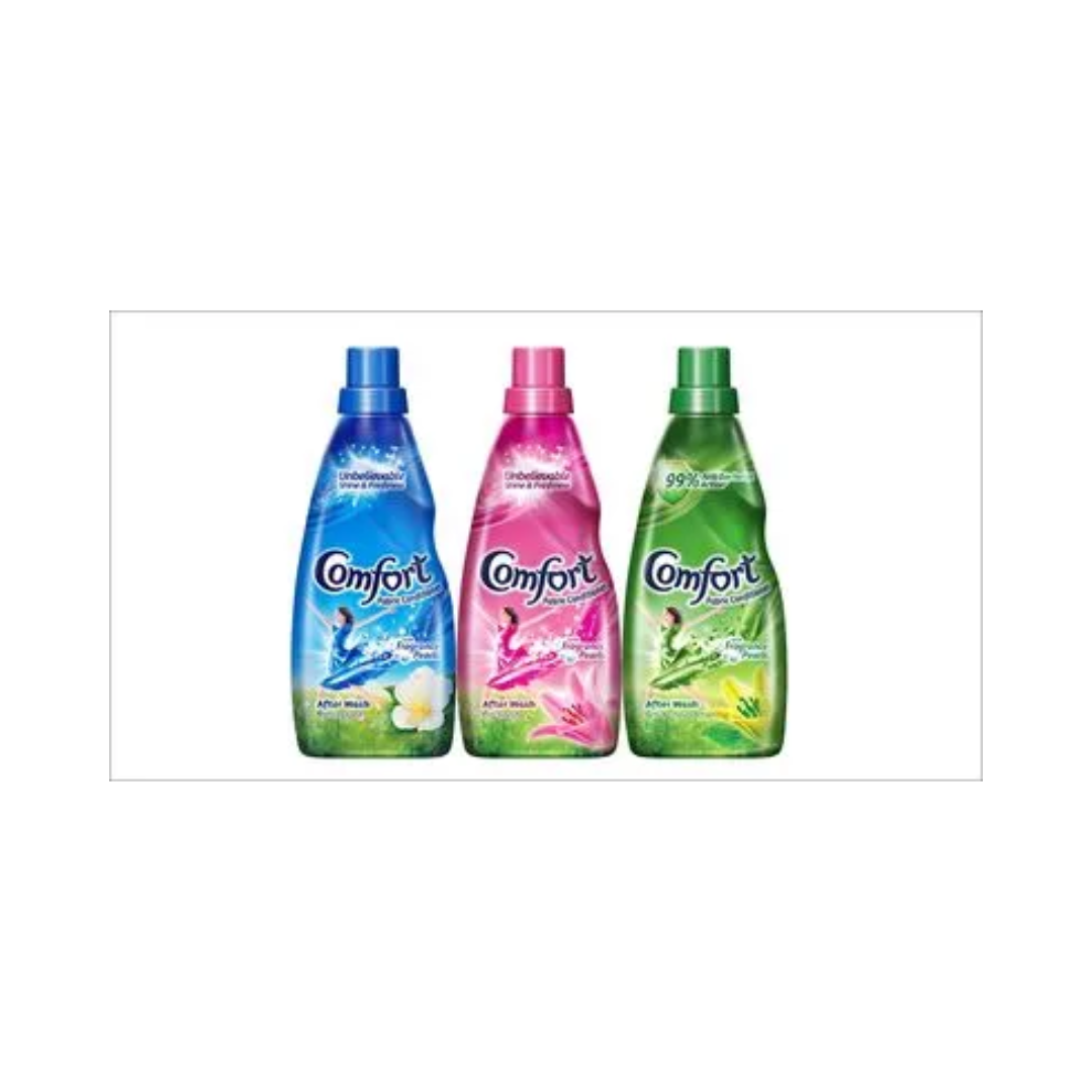• New Comfort After Wash Fabric Conditioner Lily Fresh (Pink) 220ml Bottle. New Comfort After Wash Fabric Conditioner Lily Fresh (Pink) 220ml Bottle gives your clothes unbeatable shine & fragrance that detergents alone can’t deliver. Comfort is a liquid fabric conditioner which is easy to use with bucket wash as well as machine wash. Even if you wash your clothes with the best detergent, the fibres in your clothes get tangled.