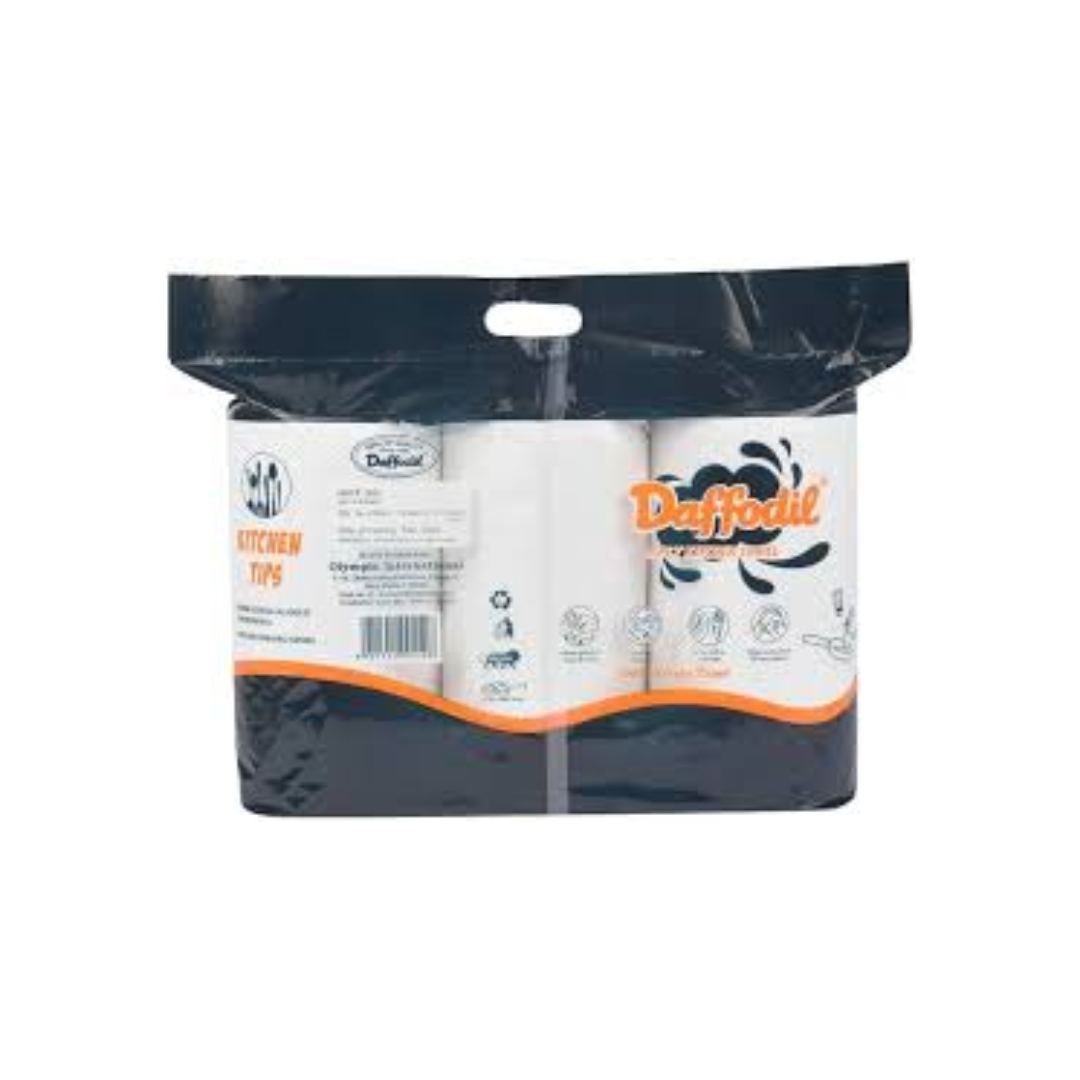 Daffodil Kitchen Towels are safe for contact with food and highly absorbent, soaking up spills quickly.They make cleanup quick and easy. Made from 100% virgin natural fiber: Free of any inks, dyes or harsh chemicals and chlorine brightening agent. Thick and 2-layer embossed kitchen tissue is designed to provide exceptional absorbency to meet your wiping needs. It leaves no leftover fragments on wet surfaces.