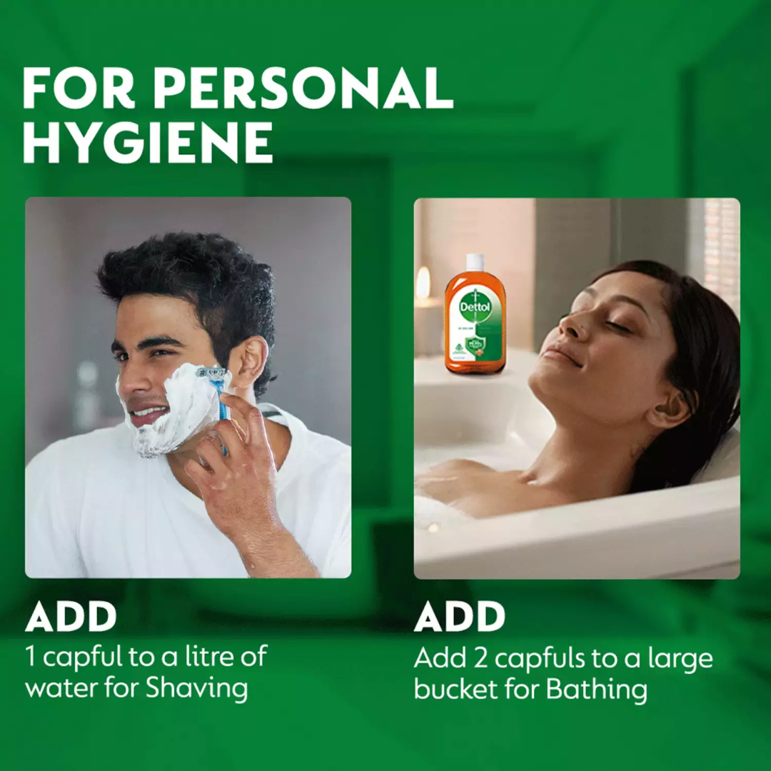 Dettol Antiseptic Liquid is widely used to prevent infections caused due to bacteria, fungus and viruses. As a first-aid, Dettol is used for cleaning wounds and scrapes, preventing the risk of any infections. It is dermatologically tested and recommended by the Indian Medical Association for surface cleaning and as a personal hygiene liquid.