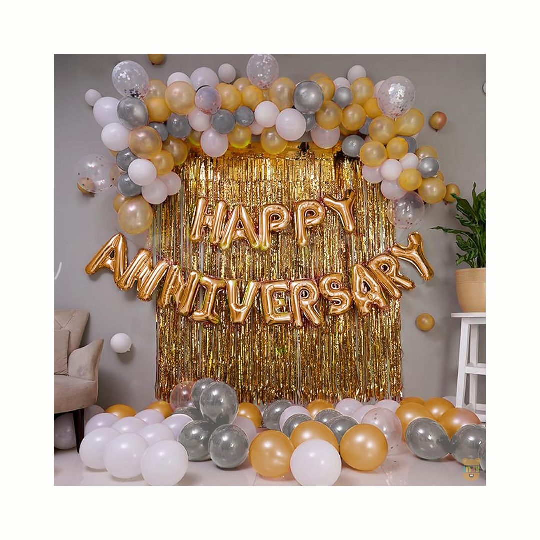 Included Components Anniversary decoration items Set contains :- Happy Anniversary Banner , 50 black & gold metallic balloonsAnniversary decoration items Set contains :- Happy Anniversary Banner , 50 black & gold metallic balloons