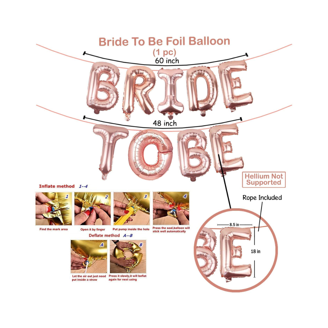 • COMPLETE BACHELORETTE PARTY DECOR COMBO: Elevate the excitement of the bride to be’s celebration with our Party Propz Bride to Be Decoration Set Combo which includes 1pc bride to be rose gold foil balloon, 1pc time to celebrate printed round foil balloon, 30pcs rose gold & white metallic balloons, 5pcs rose gold confetti, 1pc ring foil balloon, 2pcs black foil curtains, 1pc bride hairband, 1pc bride to be sash.