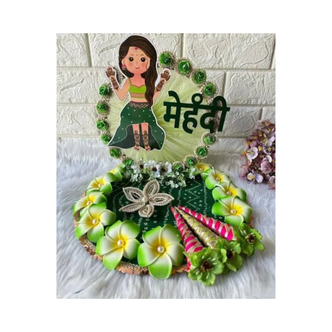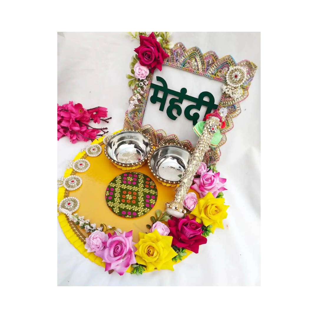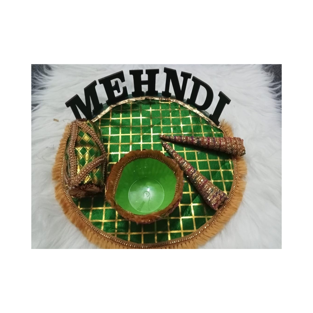 This plate is used by bride and groom in their wedding ceremony. mehndi ceremony is special rituals performed by people in their wedding ceremony.
