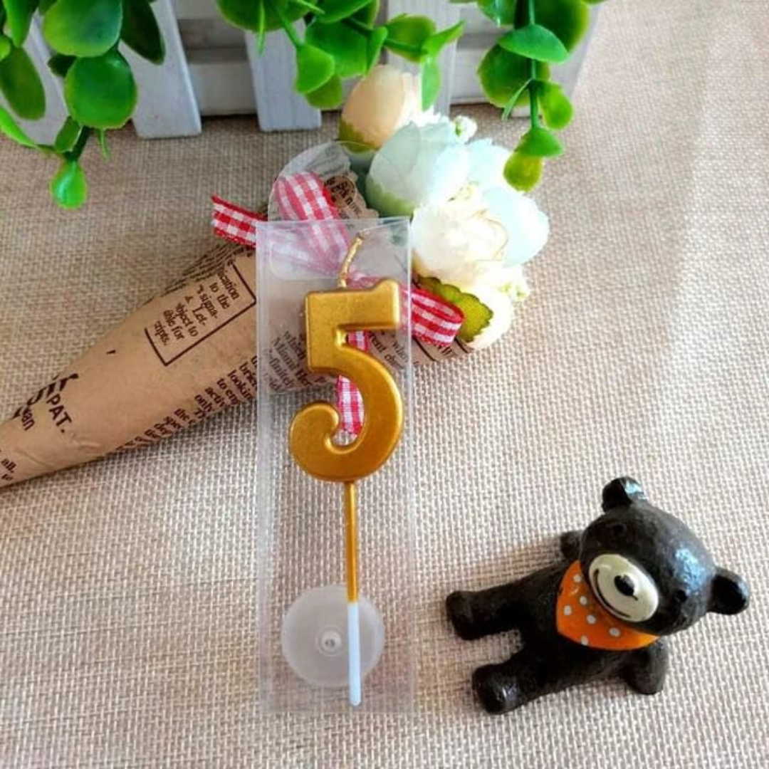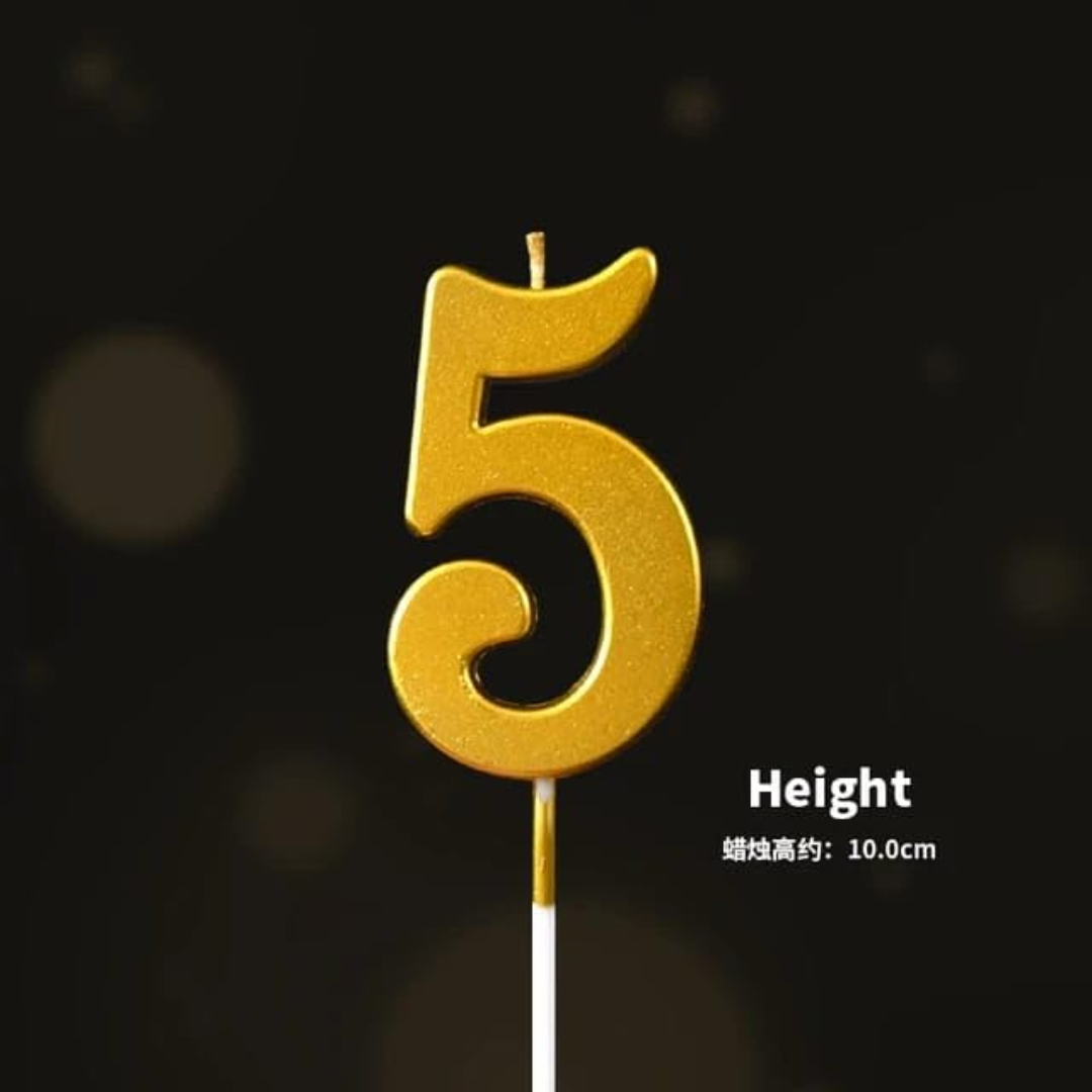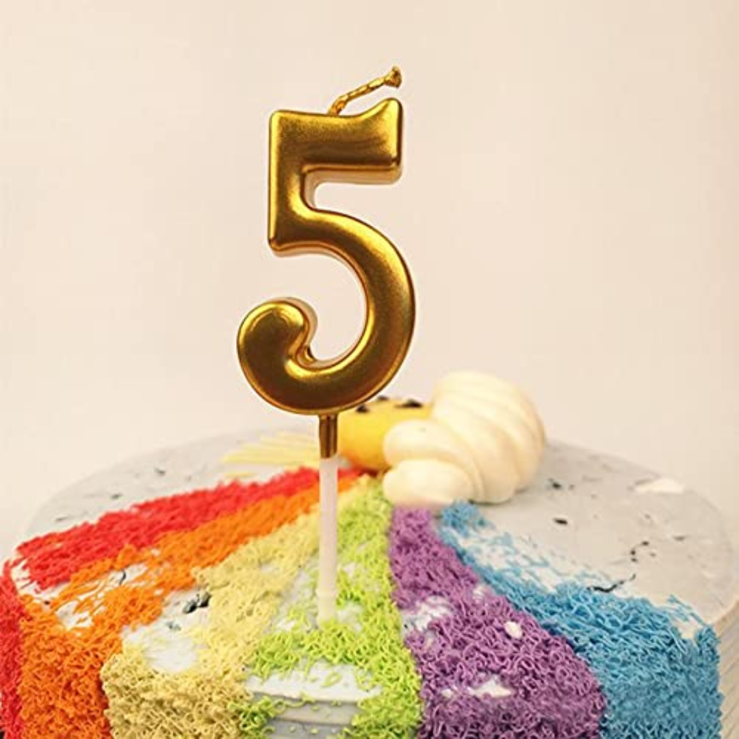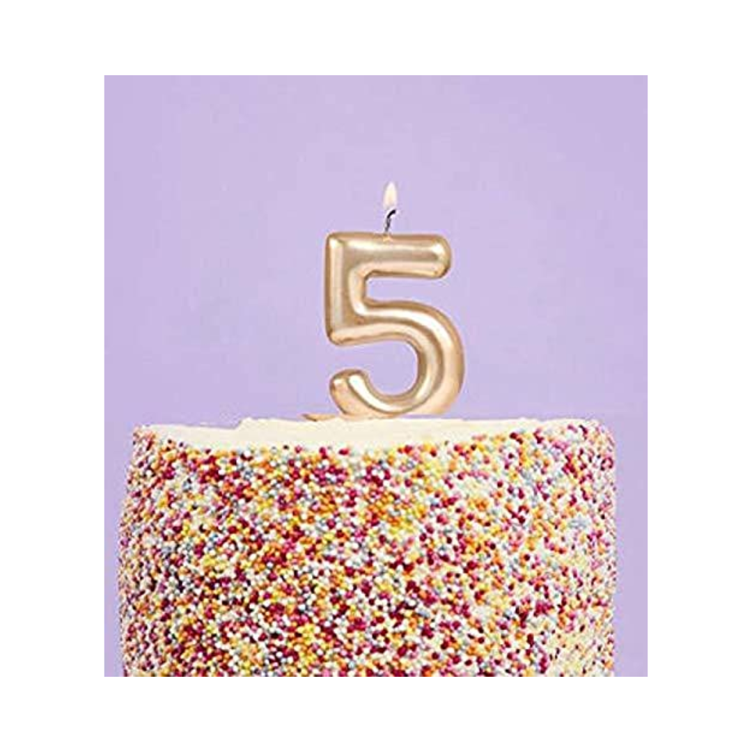 PartyToko 5th Birthday Candle/Golden Candle/Number Candle/Numerical No. 5 Candle (Gold)