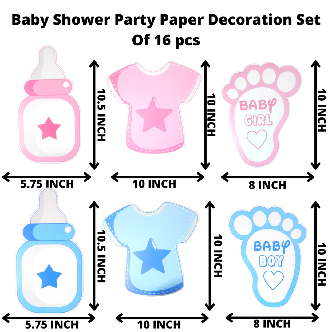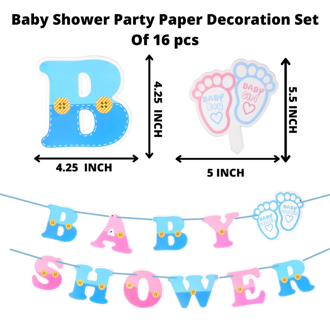Party Decorz Baby Shower Paper Decoration Set Of 16 pcs(1 pcs Baby Shower Banner + 14 pcs Baby Shower Paper Cutout + 1 pcs Cake Topper) For Baby Shower, Maternity Photoshoot Party Decoration.