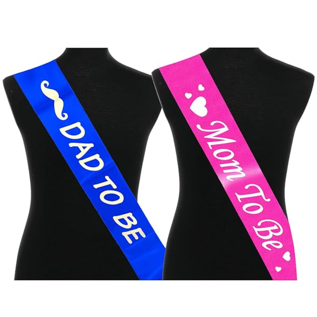 The “Dad to Be” and “Mom to Be” satin sashes are not only props but also symbols of unity, partnership, and the exciting journey ahead for the couple. They represent the shared commitment of both parents in nurturing and raising their little one.