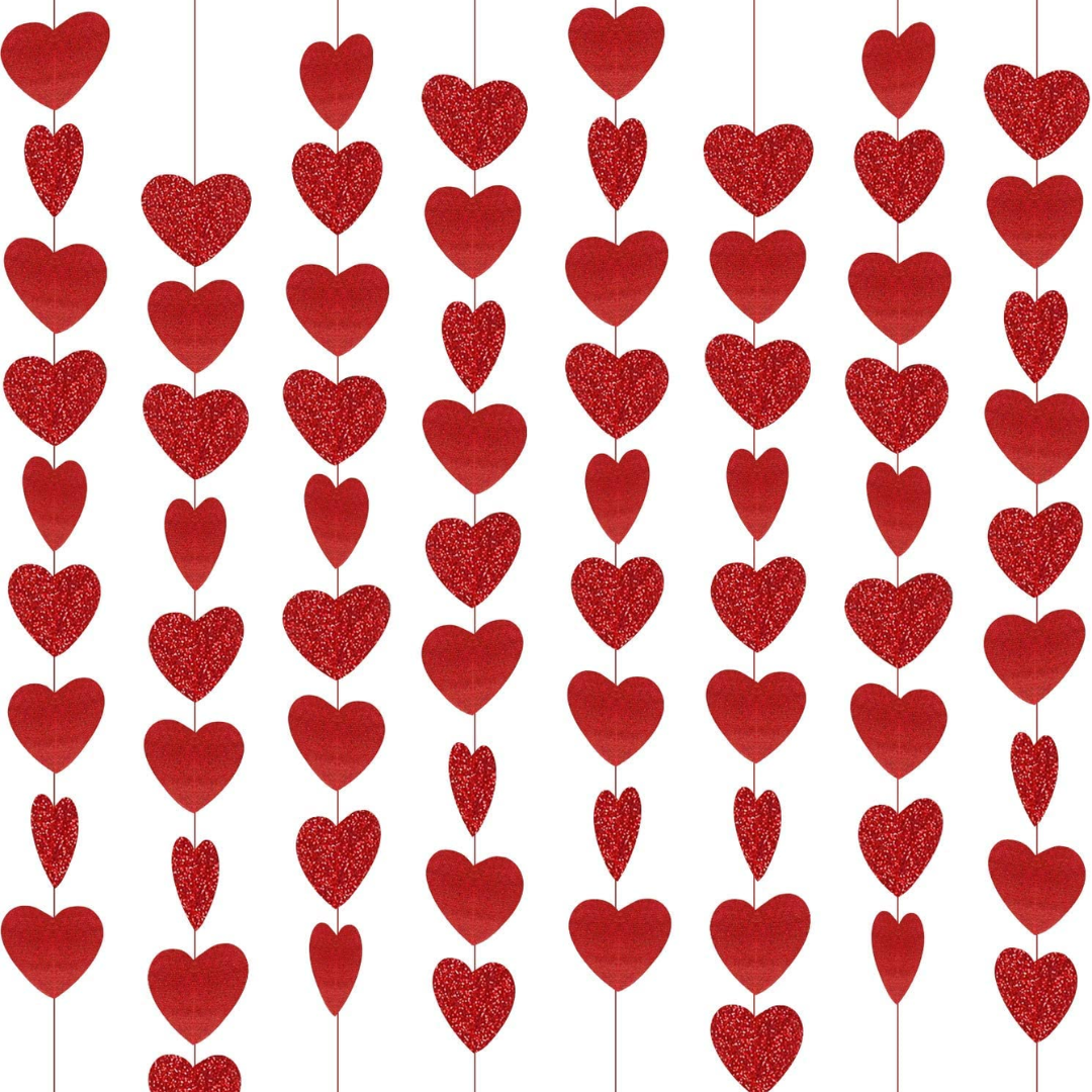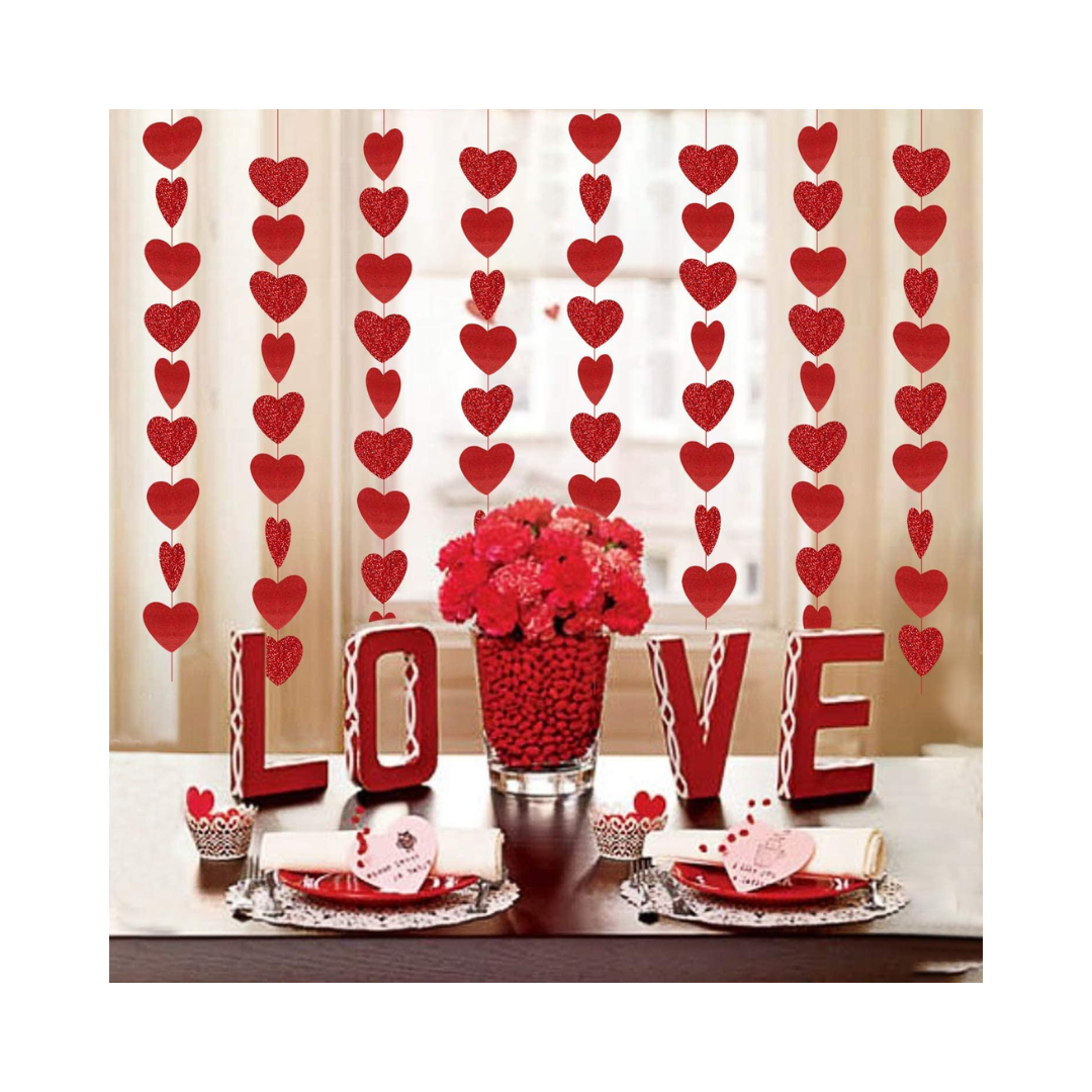 • Valentines Day Decoration Valentines Day Decor Hearts Garland Red Heart Hanging String Valentines Wedding Anniversary Birthday Party Supplies Windows Decor