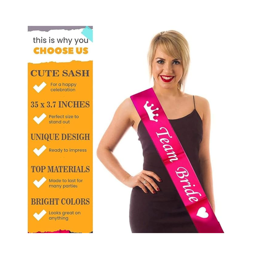 • ❤️ Make the Bride and Team bride maids stand out on your your special day with this elegant bachelorette sash. Made from satin fabric. No missing letters, no spelling errors.