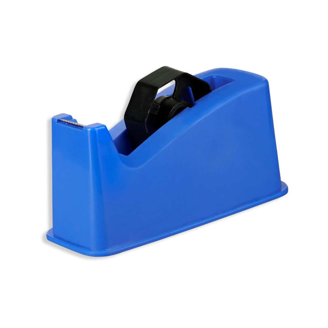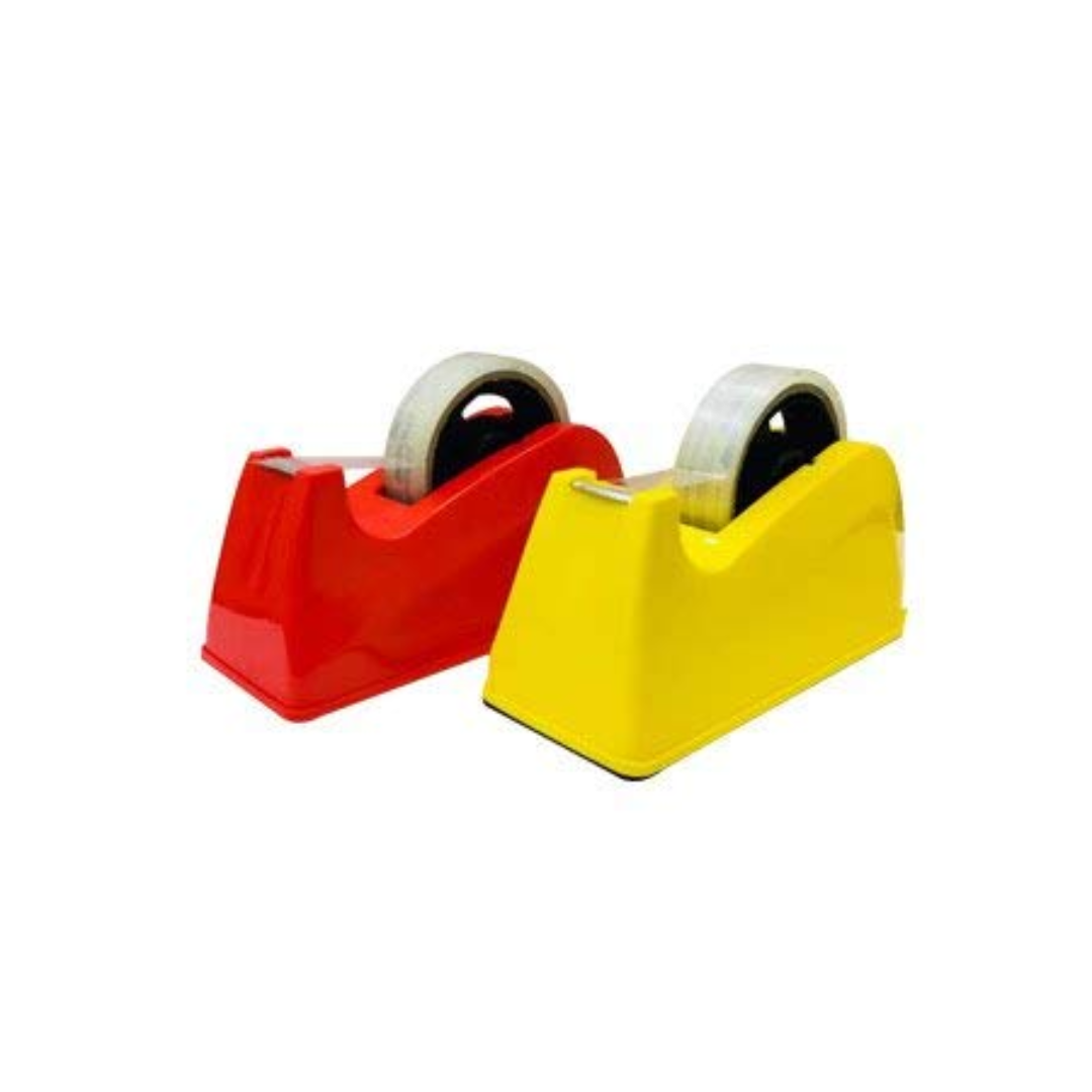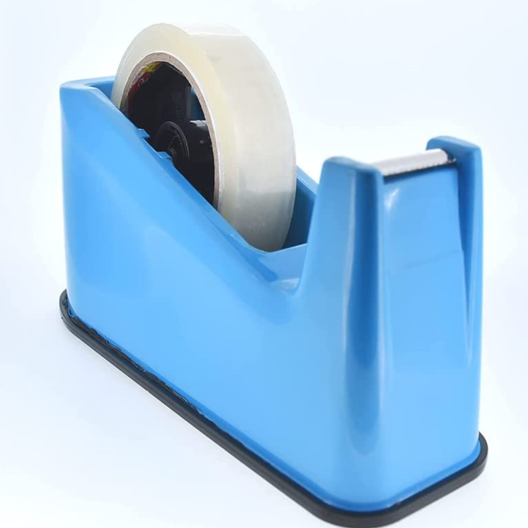 The tape can be applied manually with a stationary dispenser but is more often applied with a hand-held tape dispenser: this allows the user to more efficiently place the tape on the box, cut it off, and rub it down. Automated machinery for the application of tape to high-speed lines is also common. Make your packing needs so simple. HIGH QUALITY BLADE This Tape Cutter Comes With a Highly Sharped blade to cut off the required length of tape easily and quickly. It lasts long and cuts off the tape immediately and neatly. Package contents: 1 Tape Dispenser ( 11.2X 4.5X 4 ) cm; Color: Random (as per availability) A must-have product for every household for any kind of packing business easy wrap of gift packing for gift shop NON-SKID PAD: You can use it conveniently while standing at a distance or sitting at your desk. Long-lasting body and rustproof.