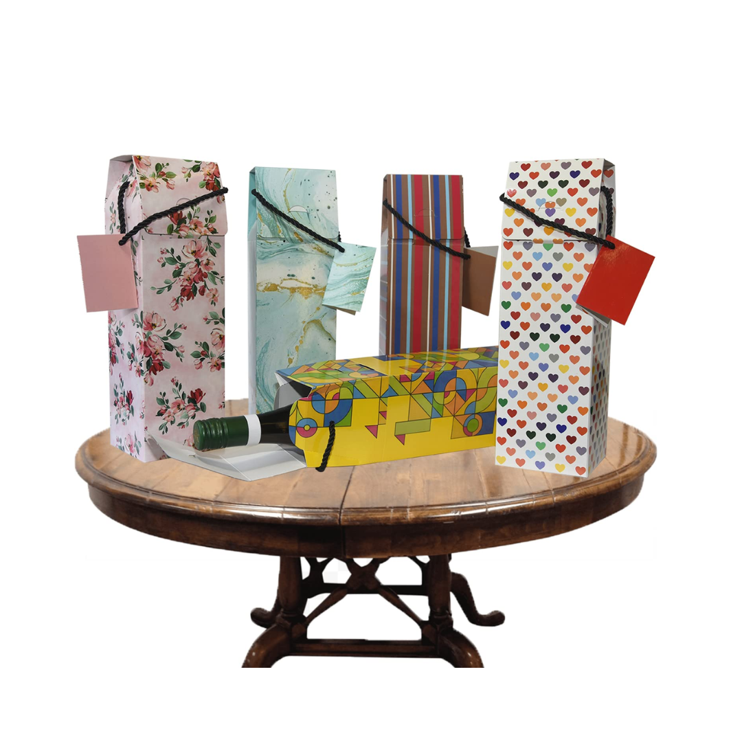 Add that special touch to your gifts with Triace Printed Wine Bags.Give your gifts a personalised appeal with these attractive bags. Best quality of caton is used to carry any size of wine bottle and it comes with blank message card.
